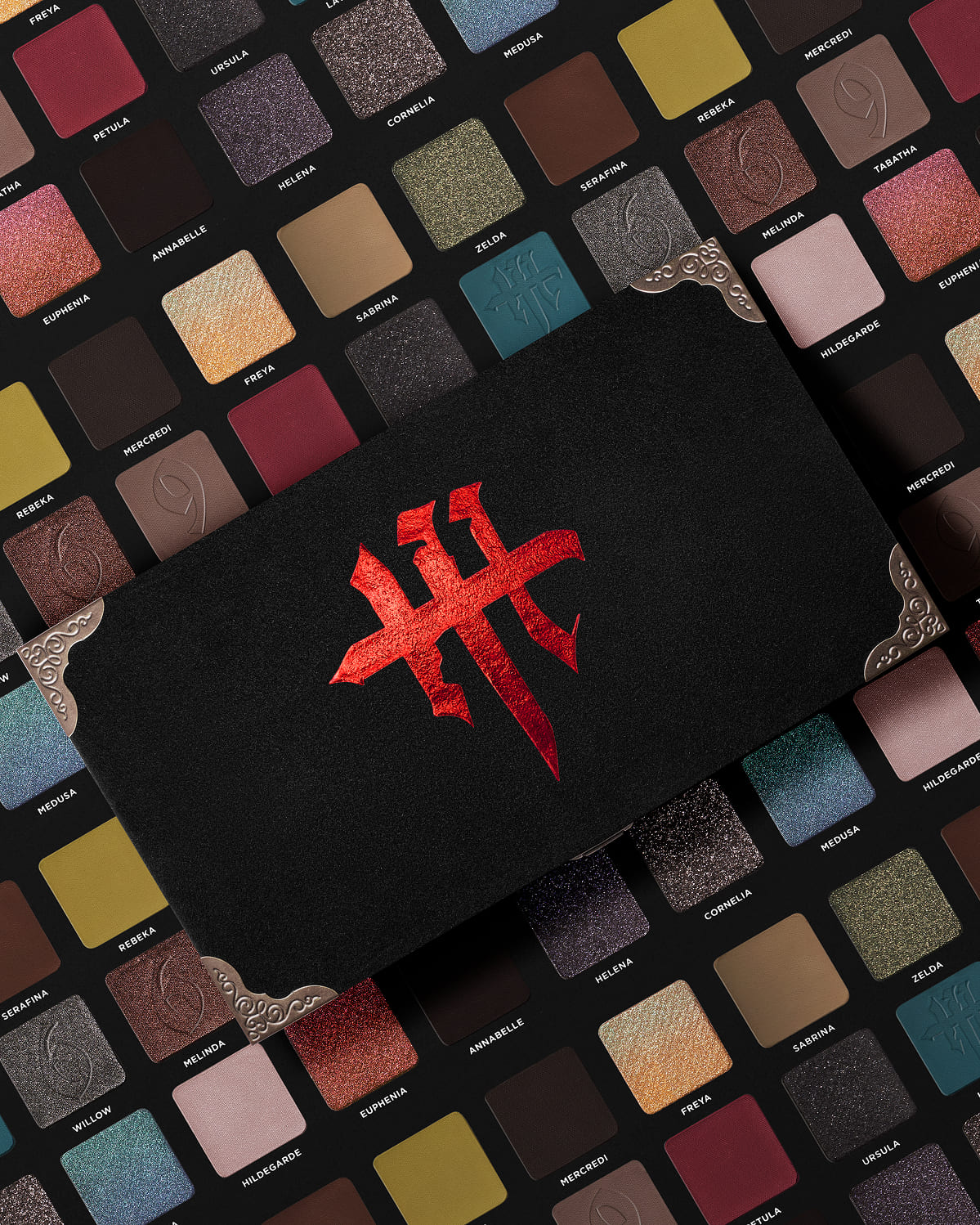 La Palette 669, telle une vieille malle ayant traversé les époques, est recouverte de velours sombre. La légende raconte qu’elle aurait envoyé plus d’une sorcière au bûcher… Composée de 18 teintes, elle t’offrira les pouvoirs d’une envoûtante créature. Des teintes sombres, dont certaines aux reflets surprenants, céderont à ton regard une indescriptible intensité mise en valeur lors de ta promenade au clair de lune dans les allées d’un cimetière nébuleux.